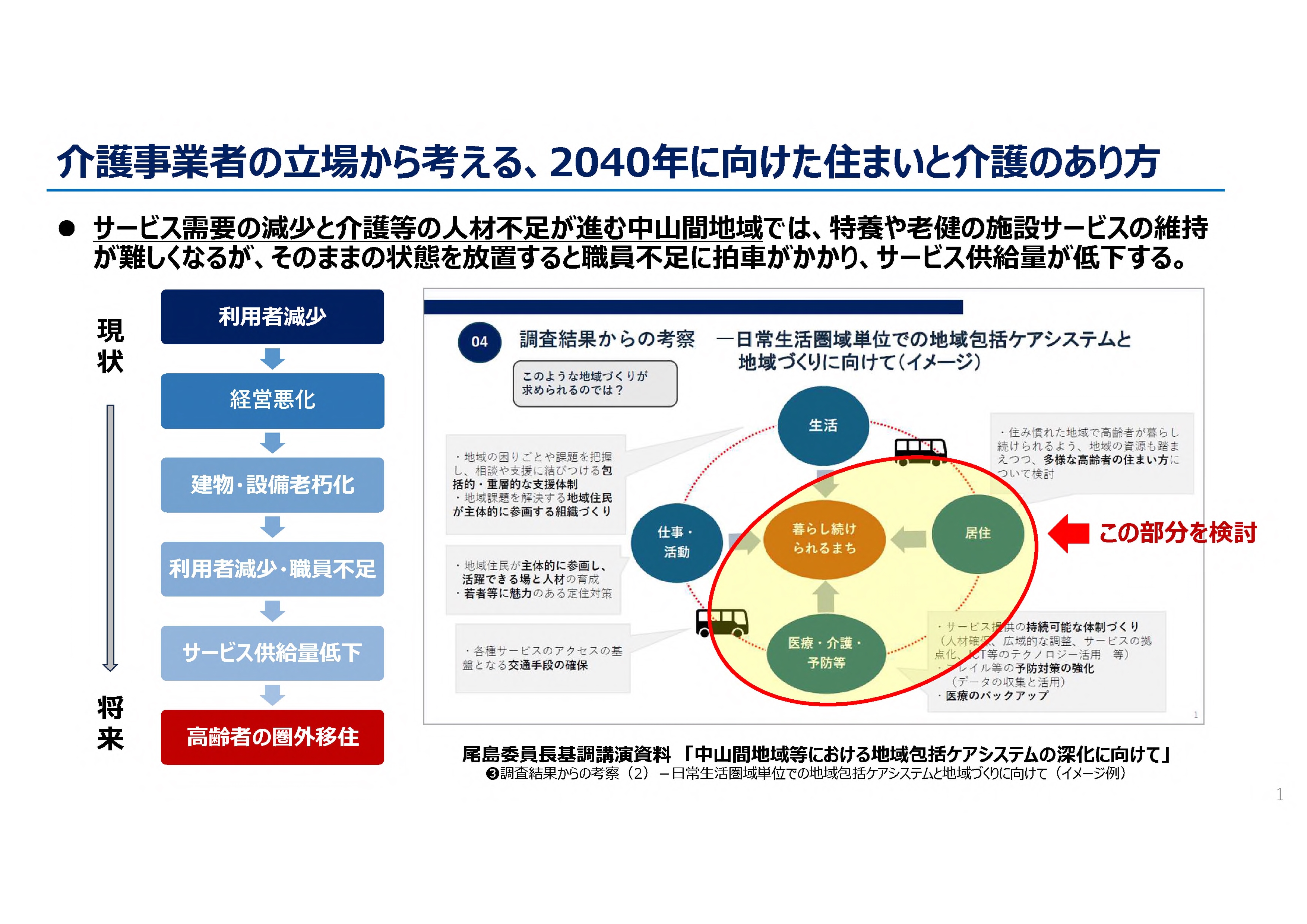 2040年を見据えた中山間地域等のくらしを支える地域包括ケアを考える