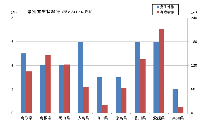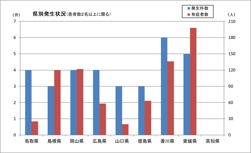 中国四国厚生局管内の県及び保健所設置市の食中毒情報