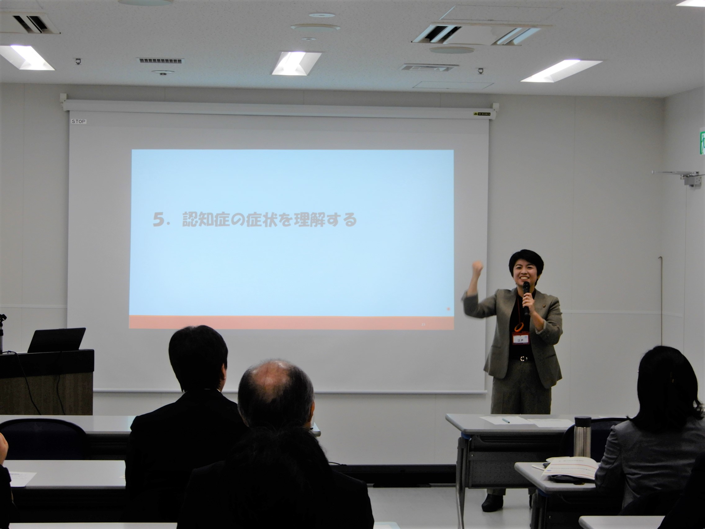 当日は、キャラバンメイトである江戸愛氏からご講義いただき、認知症の人への望ましい接し方である「急がせない」「驚かせない」「自尊心を傷つけない」について、日常生活の各場面に関する動画資料も用いてご説明がありました。