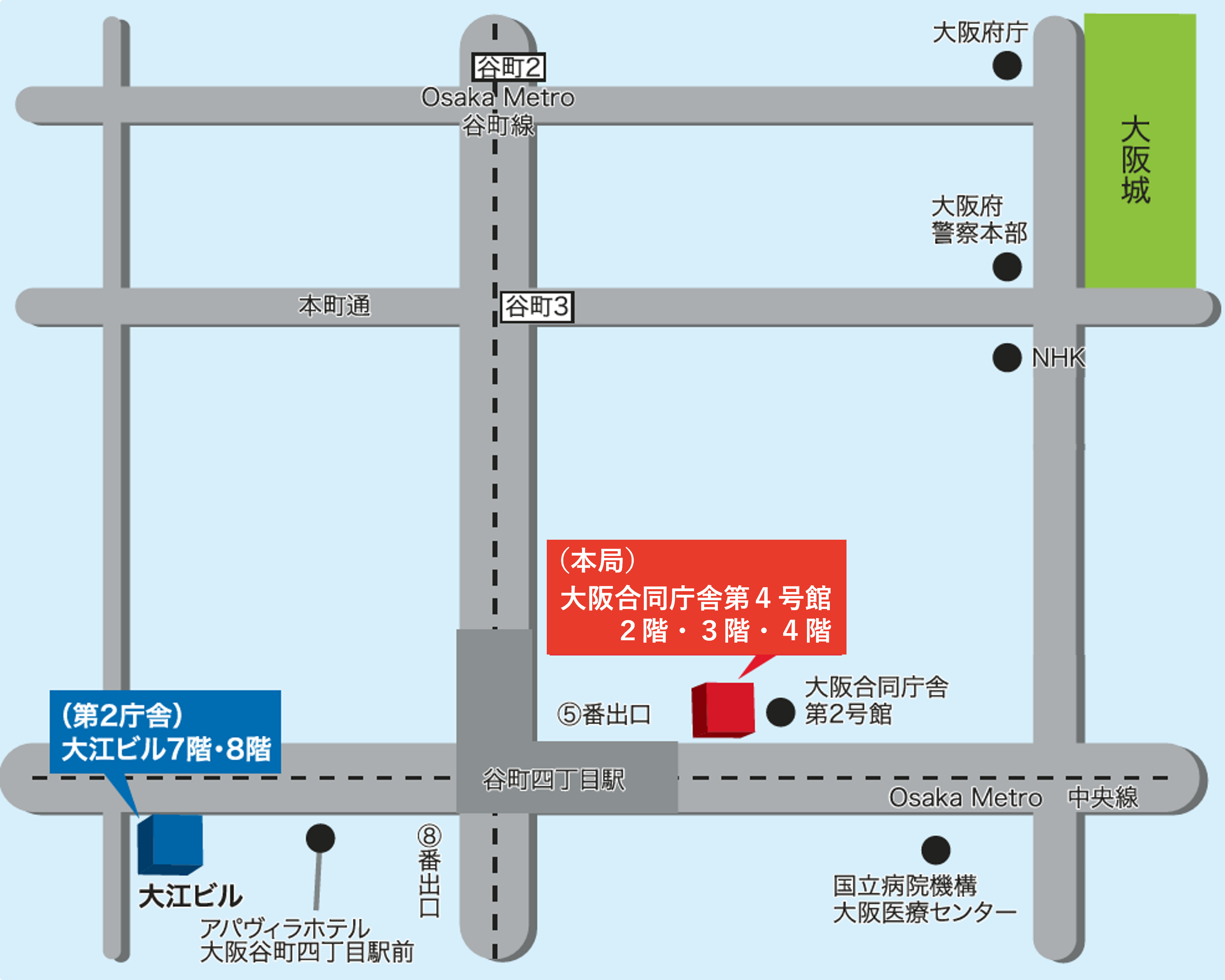 〒541-8556 大阪市中央区大手前4-1-76 大阪合同庁舎第4号館2階・3階・4階