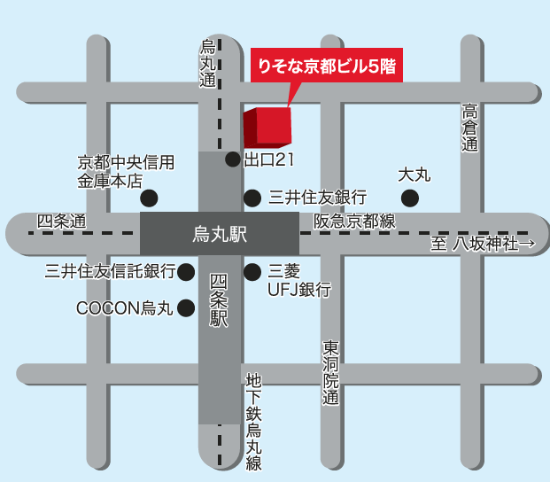 〒604-8153 京都市中京区烏丸通四条上ル笋町691 りそな京都ビル5階