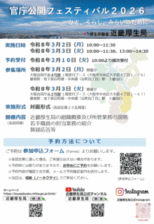 近畿厚生局では、国家公務員を目指す方を対象に「官庁公開フェスティバル2026」を開催します。