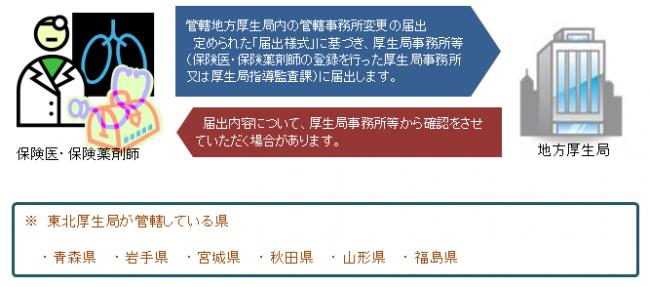 保険医・保険薬剤師の登録に関する管轄地方厚生(支)局内の管轄事務所等変更の届出手続きの流れ